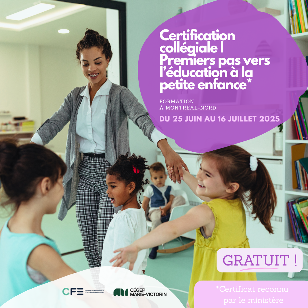 Certification collégiale | Premiers pas vers l’éducation à la petite enfance – cohorte juin-juillet
